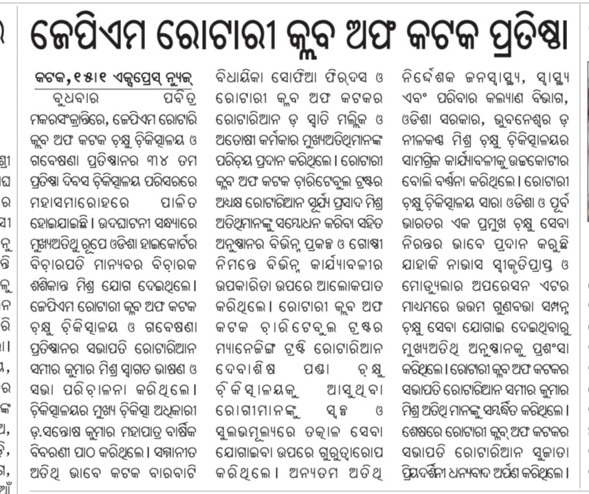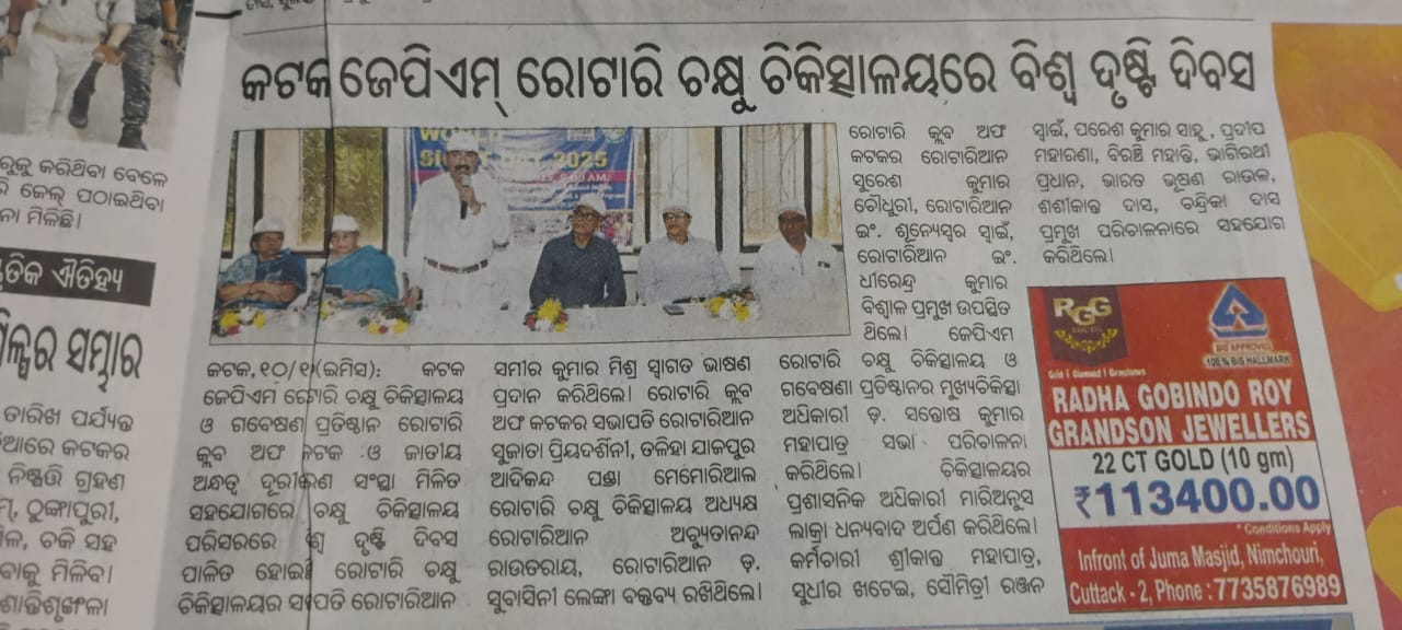 JPM Rotary Club of Cuttack Eye Hospital and Research Institute is a state-of-the-art eye institute based in Cuttack, Odisha,